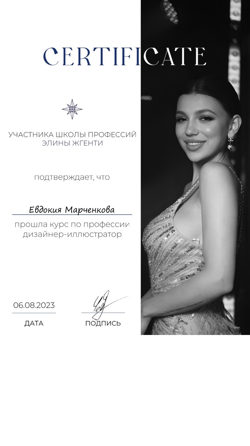 Сертификат с простым макетом(фон/текст в 1 цвет, 1 ст)